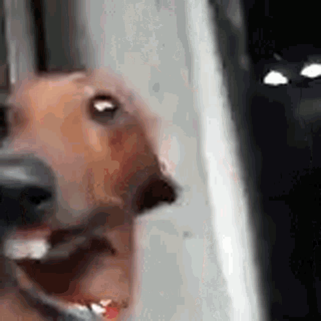 A brown dog with a rainbow collar looks around with a funny expression, possibly a meme reference.
