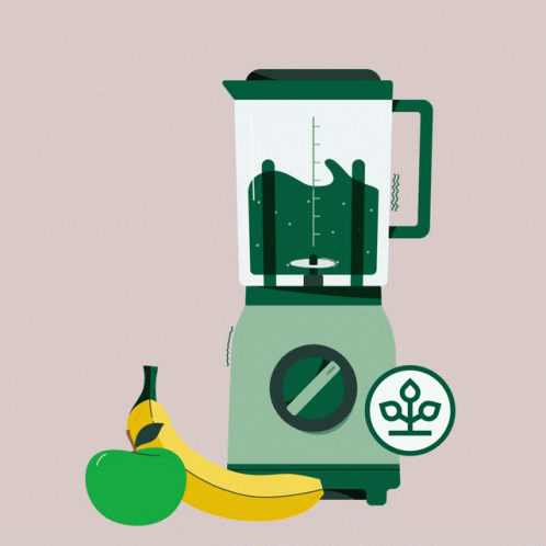 An illustration of a blender preparing a healthy vitamin boost smoothie with fresh fruits like apple and banana.