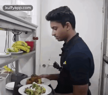 Sharan Nair smiles in a kitchen, holding two plates of delicious food, possibly from a food vlog featuring Aarthi.
