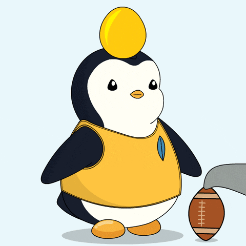 A pudgy penguin attempts to kick a football but hilariously misses, resulting in an epic fall.