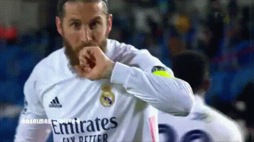 Sergio Ramos, captain of Real Madrid, celebrates a goal during a football match.