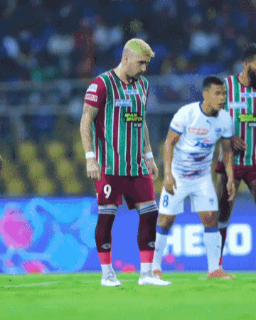 Dimitri Petratos, a footballer for Mohun Bagan, showcasing his skills in the Indian Super League.