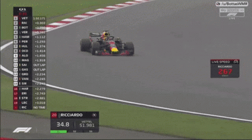 A Red Bull Formula 1 car, driven by Ricciardo, sparks dramatically while cornering on the race track.