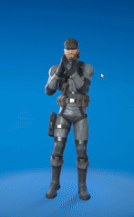 Solid Snake performs a dance emote in Fortnite, showcasing his iconic moves.