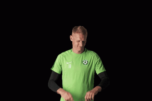 A Fortuna Liga Pribram player in a green jersey with number 11 checks his wrist, likely for added time.