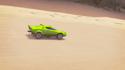 Lancia Stratos HF Group 4 rally car drifts through the desert and along the beach in Forza Horizon 3.