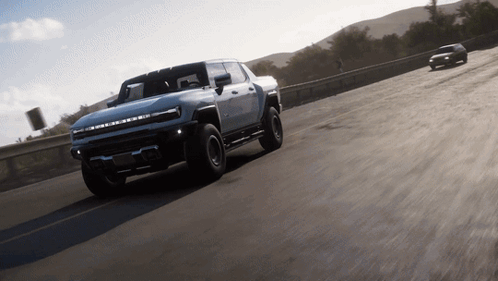 Experience the powerful GMC Hummer EV Pickup driving through scenic landscapes in Forza Horizon 5.