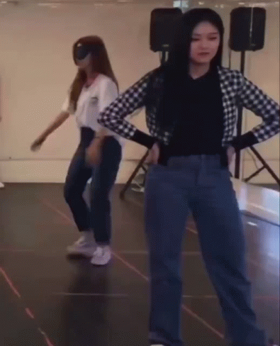 Fpasquad Zxc2 and another member of Loona practicing dance moves in a studio.
