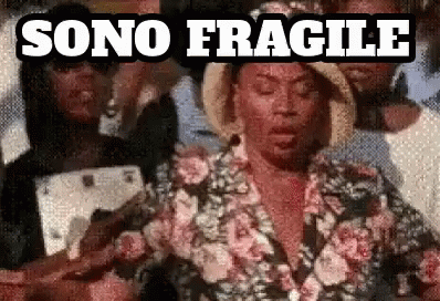 A man in a floral shirt feeling overwhelmed and asking for support, with text 'I am fragile, hold me'.