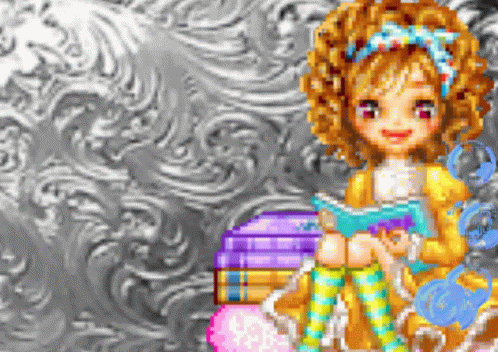 Pixel art girl reading a book with a Spanish quote on personal greatness, integrity, and positive influence.