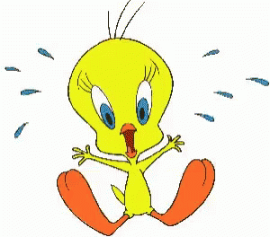 Tweety Bird with wide blue eyes and an orange beak, looking surprised or shocked.