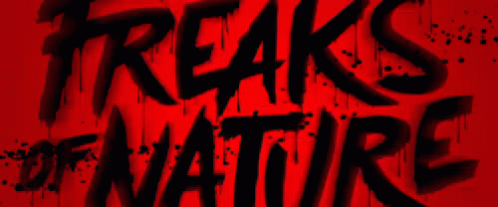 Stylized 'Freaks Of Nature' text in black with a dripping effect on a vibrant red background.