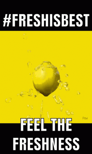 A vibrant lemon splashes into yellow liquid, accompanied by the slogans '#FRESHISBEST' and 'FEEL THE FRESHNESS'.