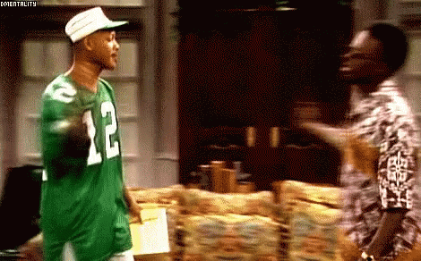 Will Smith and Carlton Banks perform their iconic, elaborate handshake from The Fresh Prince of Bel-Air.