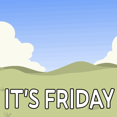 A happy cartoon crow celebrates the arrival of Friday, with the text "IT'S FRIDAY" displayed.