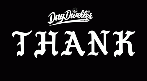 Day Dweller Clothing Co. presents a 'THANK IT'S FRIDAY' message in gothic font, celebrating the weekend.