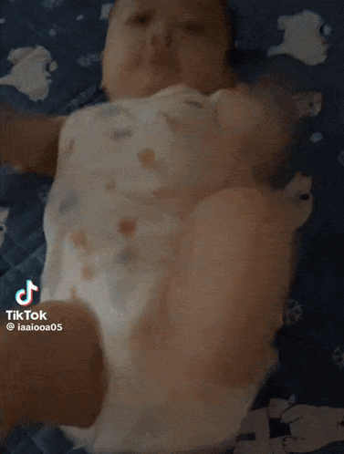 Friend Ani Baby lies on its back, playfully moving its arms and legs on a blue patterned blanket.