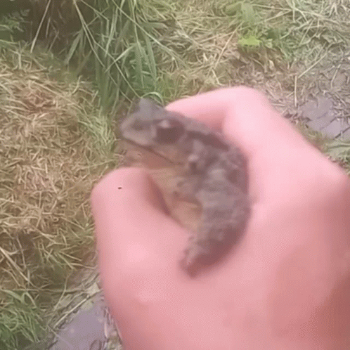 A person holds a small frog in their hand, creating a popular meme.