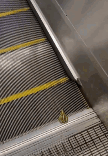 A frog attempts to climb an escalator moving in the opposite direction, a real-life Sisyphus.
