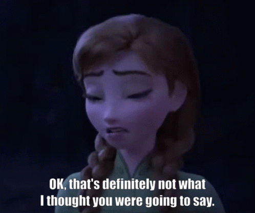 Princess Anna from Frozen 2 looks surprised, reacting to something unexpected with the caption "OK, that's definitely not what I thought you were going to say."