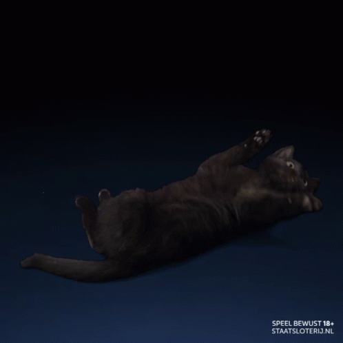 Frummel the black cat floats on its back with the message 'Veel geluk!' from Staatsloterij.