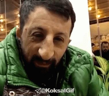Koksal, a man with a beard and green jacket, delivers a memorable 'Fuck Off' reaction.