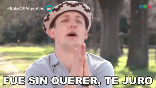 Gino from Bake Off Argentina apologizes, stating 'It was unintentional, I swear' while wearing a traditional hat.
