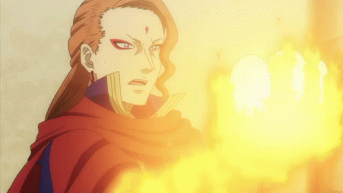 Fuegoleon Vermillion from Black Clover demonstrates his powerful fire magic, using it to perfectly cook an egg.