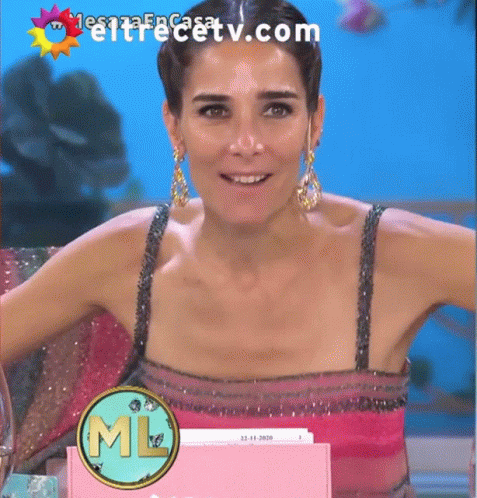 Juana Viale makes a strong, determined gesture while on the set of 'Mesaza En Casa' on El Trece.