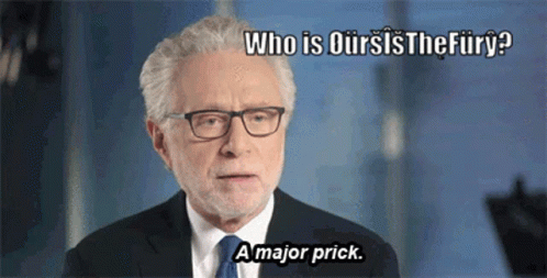 A man answers the question 'Who is OursIsTheFury?' with 'A major prick.'
