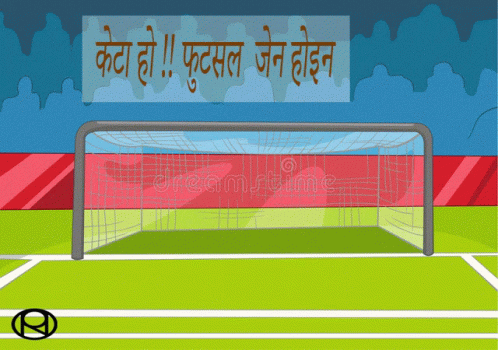 A cartoon illustration of a boy playing futsal football with a Nepali caption, emphasizing the message "Boys!! This is not Futsal".