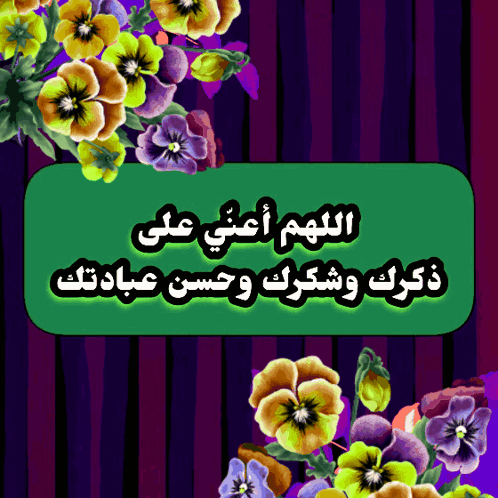 Green sign with Arabic prayer 'Oh Allah, help me to remember You, thank You, and worship You well,' surrounded by colorful flowers.