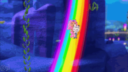Gabby and Pandy Paws from Gabby's Dollhouse enjoy a magical mermaid rainbow ride through the ocean.