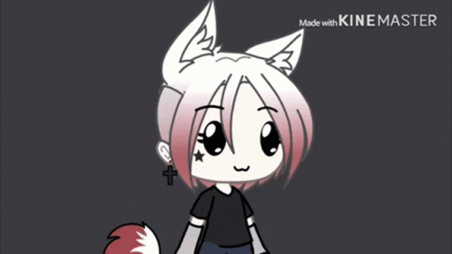 Icefox5555's Gacha character, a cute girl with fox ears and tail, blinks expressively.