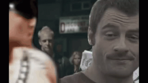 Men in a Gachi video, one with a mustache, looking at the camera.