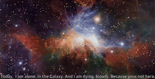 A stunning view of the Milky Way galaxy, accompanied by a poignant message of loneliness and slow demise.