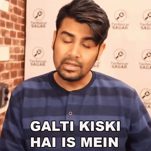 Abhishek Sagar asks 'Galti Kiski Hai Is Mein?' (Whose fault is it?) with a funny and expressive face.