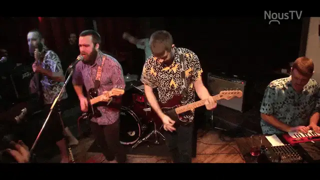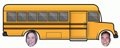 A yellow school bus with the faces of Gambrinus and Ratibor as its wheels, featuring the tag "getbussed".