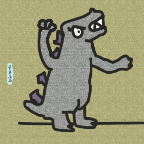 Animated cartoon featuring a Godzilla-like monster and Donkey Kong by luisricardo, in a retro game style.