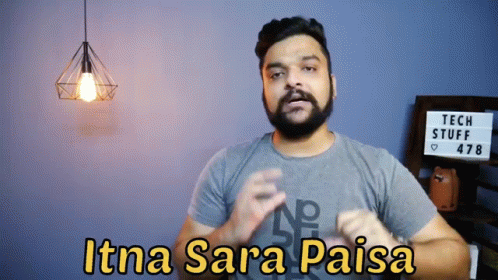 A bearded man gestures while speaking in Hindi/Urdu, expressing that he doesn't have much money.