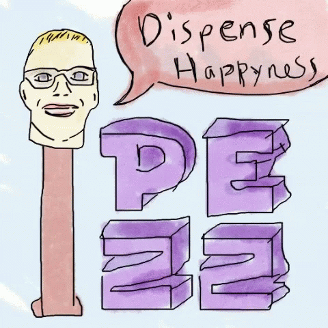 Garyvee and Nevin Webster depicted as a PEZ dispenser, with a speech bubble saying 'Dispense Happyness'.