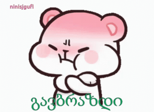 Cute cartoon bear from ninisjgufi expressing anger with Georgian text 'I'm angry, you made me angry'.