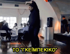 A man performs the traditional Greek Zeimpekiko dance, also known as Gaybekiko, in a lively setting.