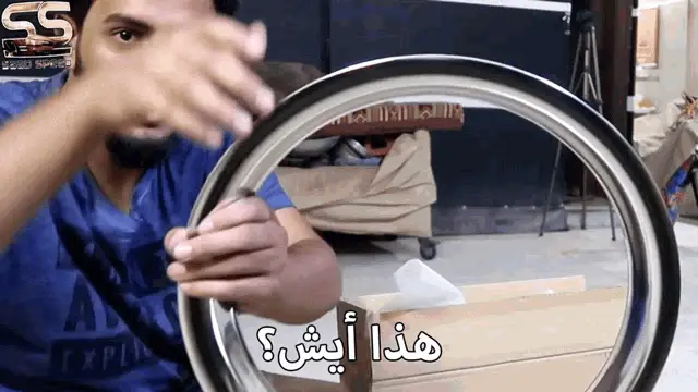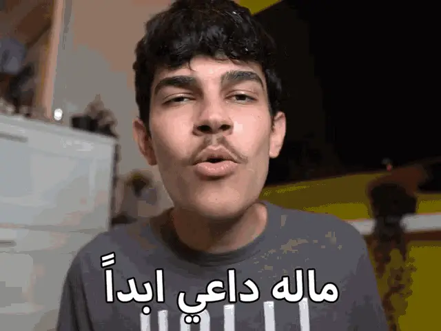 A young man in a white hoodie reacts with a surprised expression, holding an object, with the Arabic caption "I messed up".
