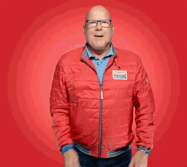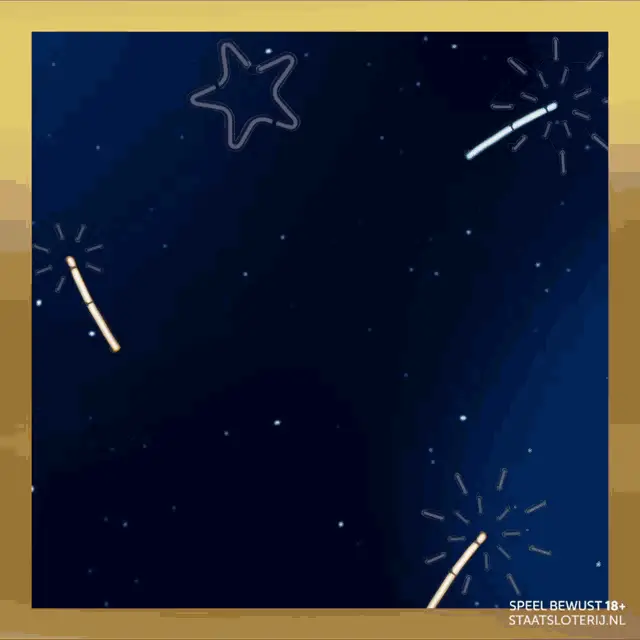 Animated gold glitter logo for Geluksbrengers Staatsloterij, featuring a four-leaf clover with a red heart.