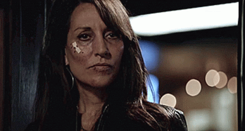 Katey Sagal as Gemma Teller from Sons of Anarchy, showcasing her character's intensity and resilience.