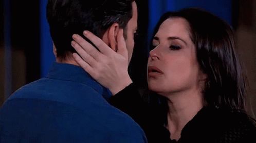 Sam McCall tenderly caresses Dante Falconeri's face in a passionate moment from General Hospital.