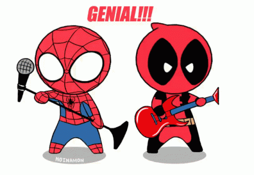 A genial cartoon drawing featuring the iconic characters Deadpool and Spider-Man.