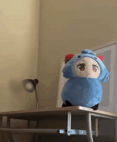 A Ganyu plushie from Genshin Impact sits on a table, confronted by a .357 revolver.
