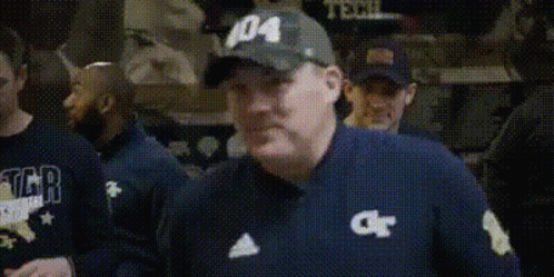 Geoff Collins raises a drink in a 'Waho' gesture, celebrating with Georgia Tech spirit.